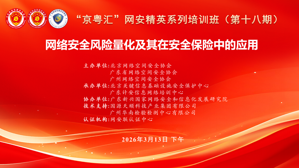 2026年3月13日下午,由北京网络空间安全协会、广东省网络空间安全协会和广州网络空间安全协会联合主办的“京粤汇”网安精英系列(第十八期)培训班——网络安全风险量化及其在安全保险中的应用成功举办!本次培训吸引北京、广东协会会员91人参与。
