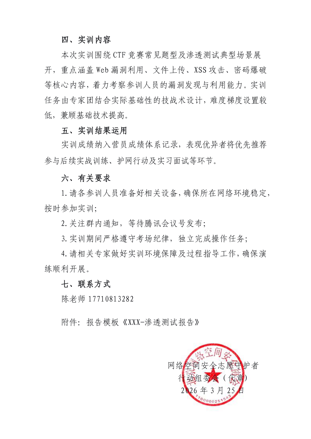 1. 实训结束后需按模板提交渗透测试报告至指定邮箱;