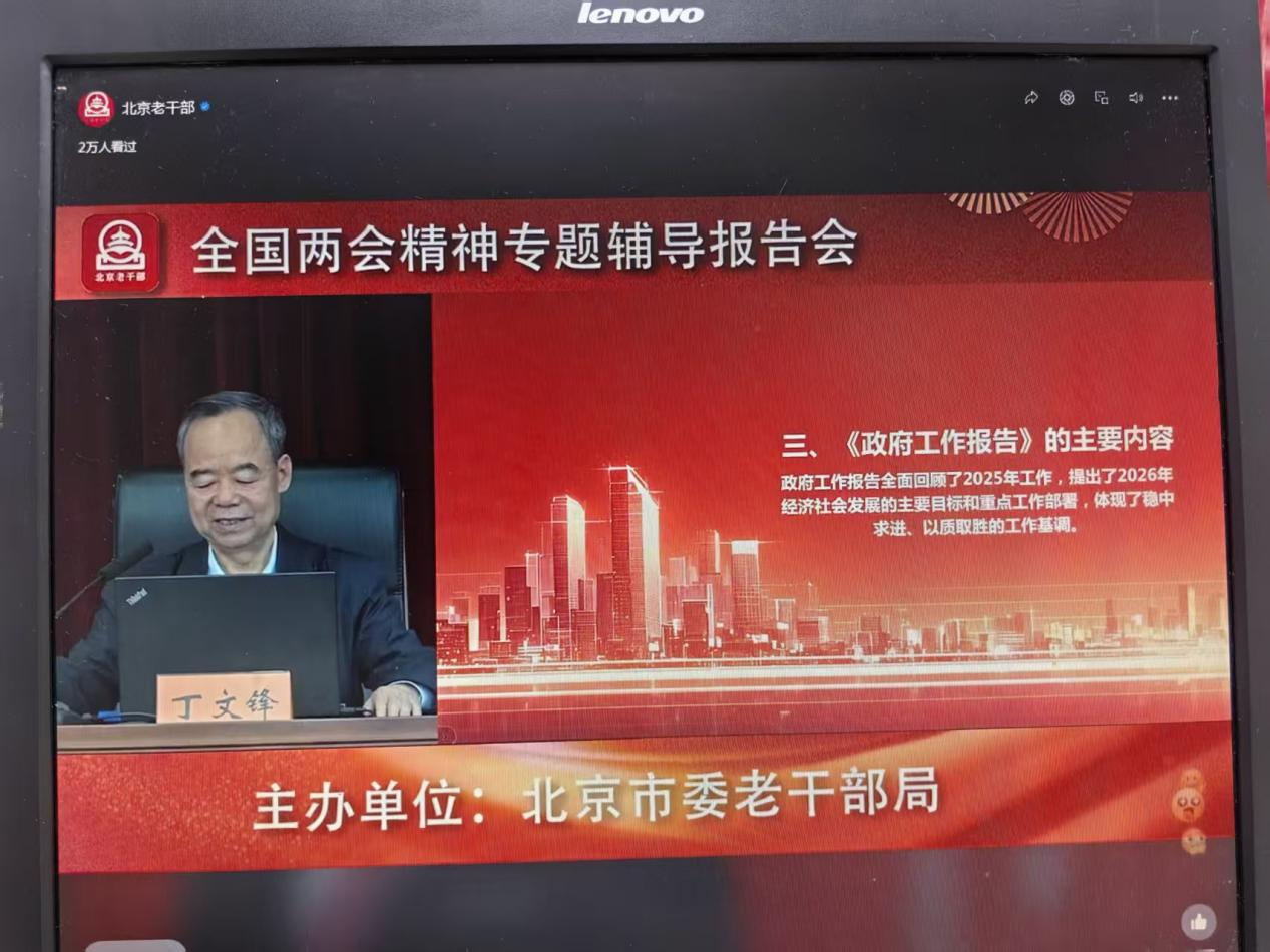 3月24日下午,北京网络空间安全协会流动联合党支部组织本单位党员及从业人员,集中收看2026全国两会精神专题辅导报告会视频直播。辅导报告会专题学习习近平总书记在两会期间的重要讲话精神和《政府工作报告》主要内容。本次报告会由国务院政府特殊津贴专家、中共中央党校(国家行政学院)丁文峰教授作专题辅导。